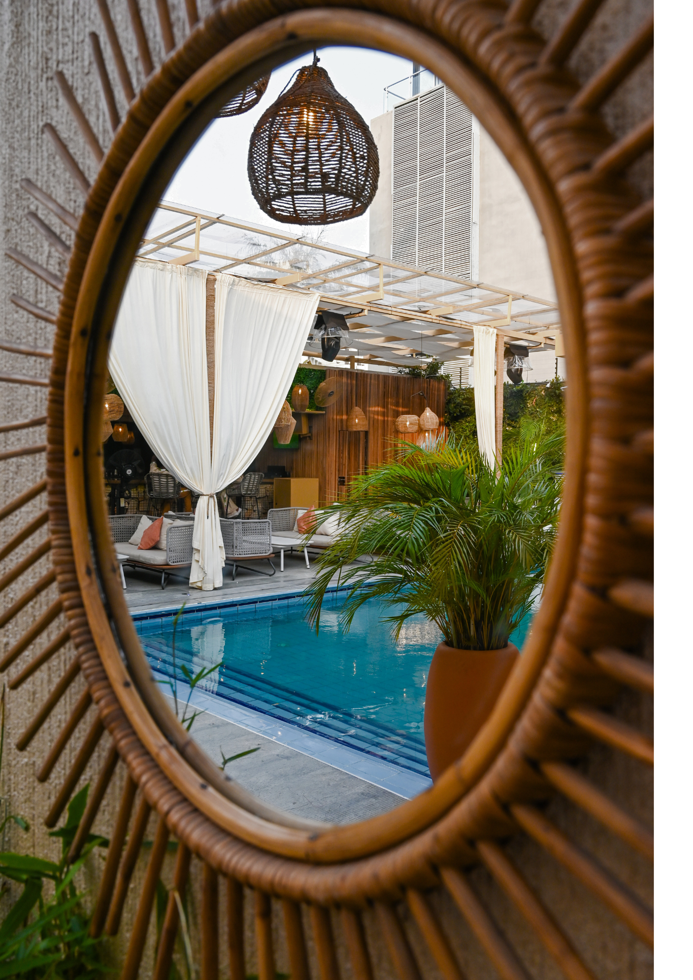 Natural textures, greenery, and curated sounds creating a refreshing escape within the city.